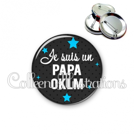 Image imprimée en haute résolution sur papier de qualité, protégée d'un film plastique, et sertie sur une coque et épingle métallique.