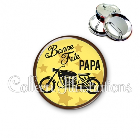 Image imprimée en haute résolution sur papier de qualité, protégée d'un film plastique, et sertie sur une coque et épingle métallique.
