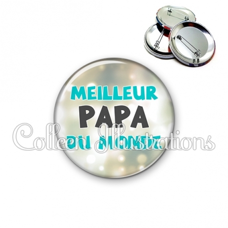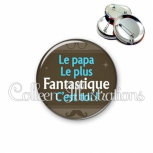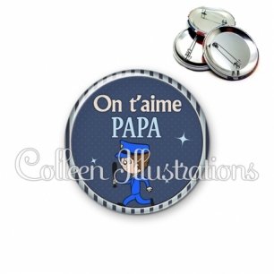 Image imprimée en haute résolution sur papier de qualité, protégée d'un film plastique, et sertie sur une coque et épingle métallique.