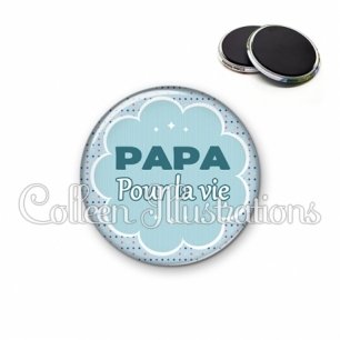 Image imprimée en haute résolution sur papier de qualité, protégée d'un film plastique, et sertie sur une coque métallique avec dos aimanté.