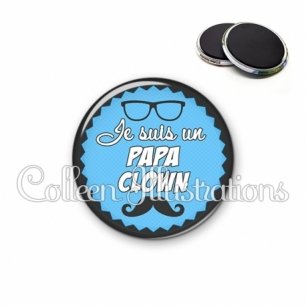 Magnet métallique avec image fantaisie et texte.