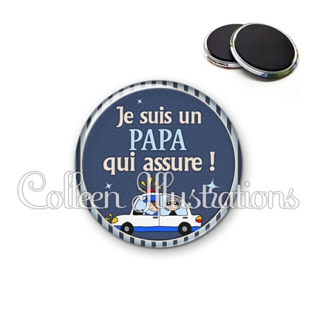 Image imprimée en haute résolution sur papier de qualité, protégée d'un film plastique, et sertie sur une coque métallique avec dos aimanté.