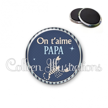 Image imprimée en haute résolution sur papier de qualité, protégée d'un film plastique, et sertie sur une coque métallique avec dos aimanté.