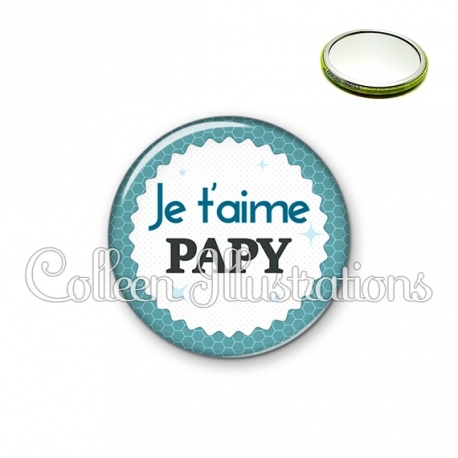 Miroir simple avec dos métallique décoré d'une image fantaisie et texte.