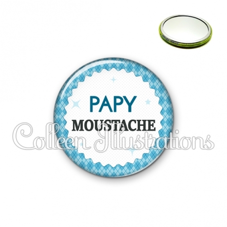 Image imprimée en haute résolution sur papier de qualité, protégée d'un film plastique, et sertie sur une coque métallique avec dos miroir. Une seule face, non grossissante.
