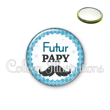 Miroir simple avec dos métallique décoré d'une image fantaisie et texte.