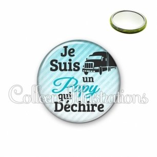 Miroir simple avec dos métallique décoré d'une image fantaisie et texte.