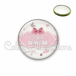 Miroir simple avec dos métallique décoré d'une image fantaisie et texte.