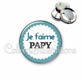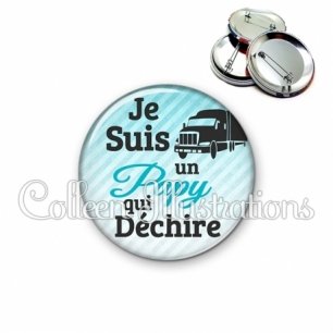 Image imprimée en haute résolution sur papier de qualité, protégée d'un film plastique, et sertie sur une coque et épingle métallique.