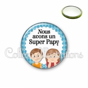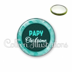Miroir simple avec dos métallique décoré d'une image fantaisie et texte.