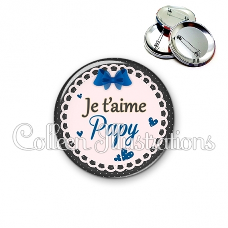 Image imprimée en haute résolution sur papier de qualité, protégée d'un film plastique, et sertie sur une coque et épingle métallique.