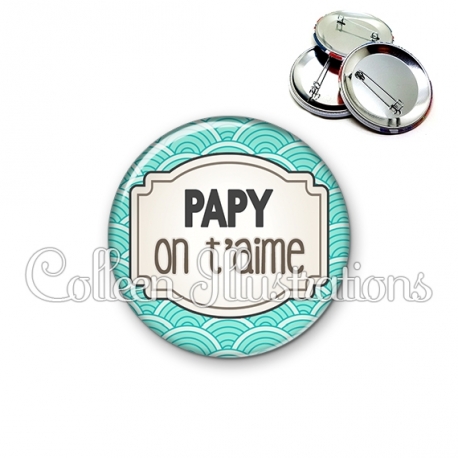 Image imprimée en haute résolution sur papier de qualité, protégée d'un film plastique, et sertie sur une coque et épingle métallique.