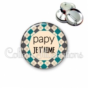 Image imprimée en haute résolution sur papier de qualité, protégée d'un film plastique, et sertie sur une coque et épingle métallique.
