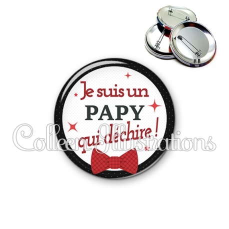 Image imprimée en haute résolution sur papier de qualité, protégée d'un film plastique, et sertie sur une coque et épingle métallique.