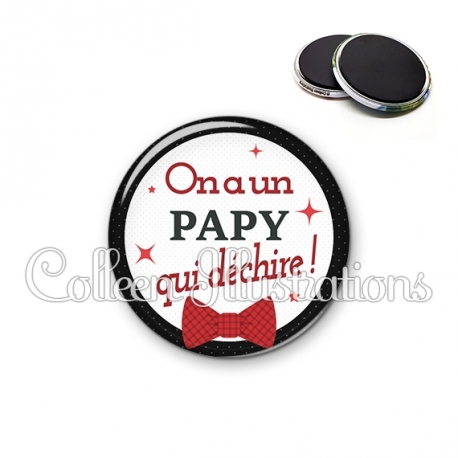Image imprimée en haute résolution sur papier de qualité, protégée d'un film plastique, et sertie sur une coque métallique avec dos aimanté.