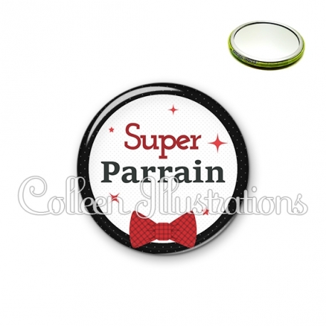 Miroir simple avec dos métallique décoré d'une image fantaisie et texte.