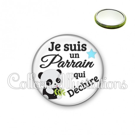 Miroir simple avec dos métallique décoré d'une image fantaisie et texte.
