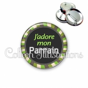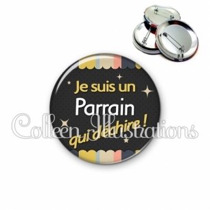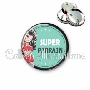 Image imprimée en haute résolution sur papier de qualité, protégée d'un film plastique, et sertie sur une coque et épingle métallique.
