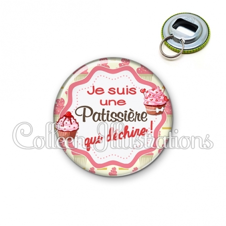 Image imprimée en haute résolution sur papier de qualité, protégée d'un film plastique, et sertie sur une coque métallique avec dos décapsuleur.