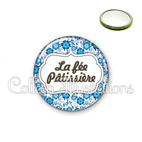 Miroir simple avec dos métallique décoré d'une image fantaisie et texte.