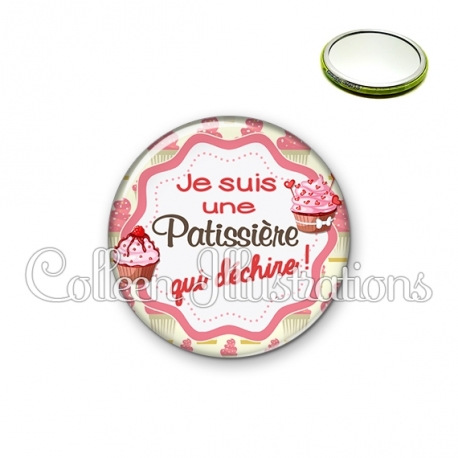 Miroir simple avec dos métallique décoré d'une image fantaisie et texte.