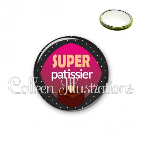 Miroir simple avec dos métallique décoré d'une image fantaisie et texte.