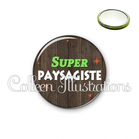Miroir simple avec dos métallique décoré d'une image fantaisie et texte.