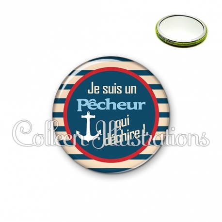 Miroir simple avec dos métallique décoré d'une image fantaisie et texte.
