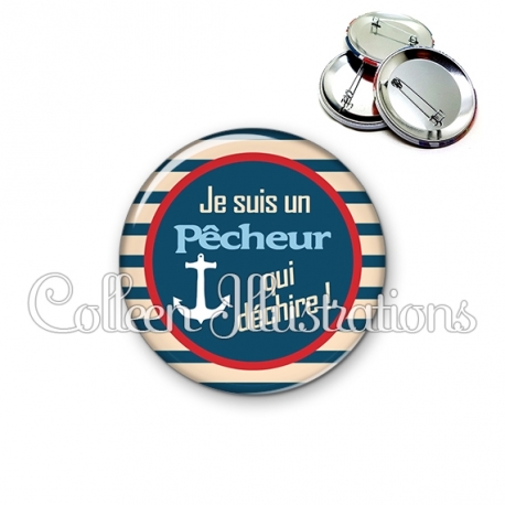 Image imprimée en haute résolution sur papier de qualité, protégée d'un film plastique, et sertie sur une coque et épingle métallique.