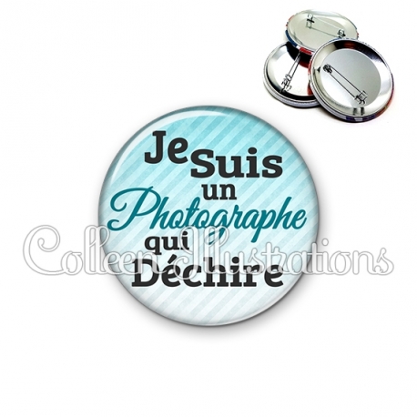 Image imprimée en haute résolution sur papier de qualité, protégée d'un film plastique, et sertie sur une coque et épingle métallique.