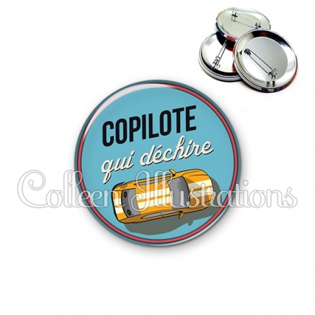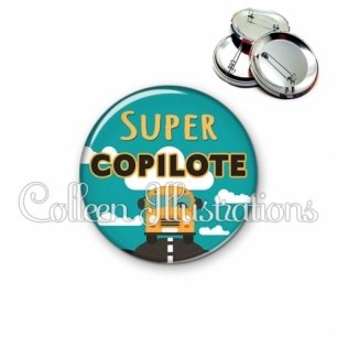 Image imprimée en haute résolution sur papier de qualité, protégée d'un film plastique, et sertie sur une coque et épingle métallique.