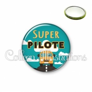 Miroir simple avec dos métallique décoré d'une image fantaisie et texte.