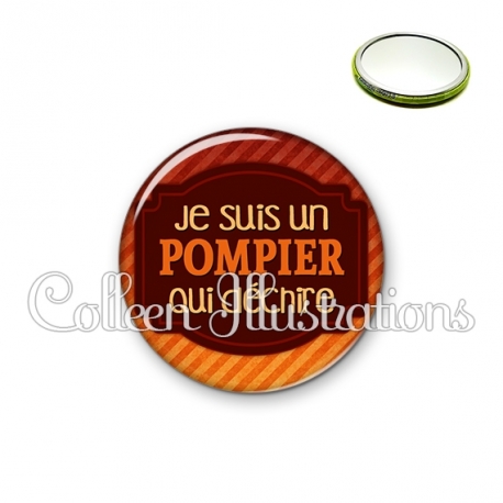 Image imprimée en haute résolution sur papier de qualité, protégée d'un film plastique, et sertie sur une coque métallique avec dos miroir. Une seule face, non grossissante.