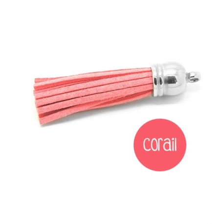 Pompon en suédine corail rouge clair 58mm avec embout argenté