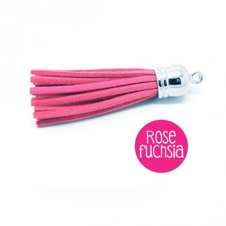 Pompon en suédine rose fuchsia 58mm avec embout argenté