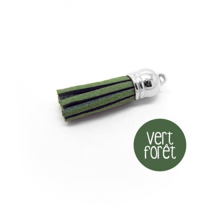 Pompon en suédine vert forêt 38mm avec embout argenté