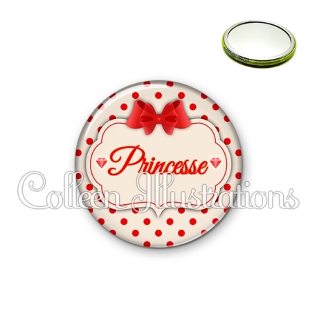 Miroir simple avec dos métallique décoré d'une image fantaisie et texte.