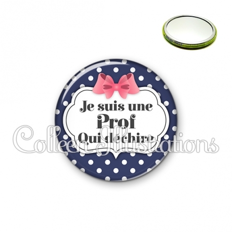 Miroir simple avec dos métallique décoré d'une image fantaisie et texte.