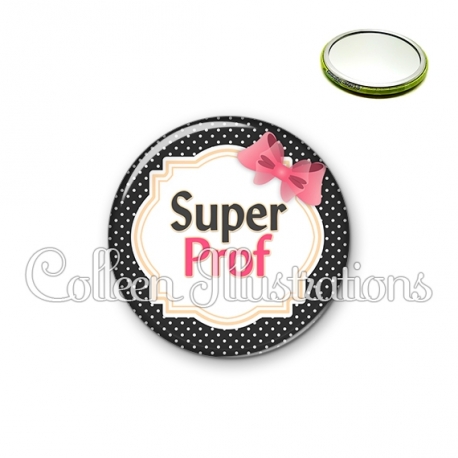 Miroir simple avec dos métallique décoré d'une image fantaisie et texte.