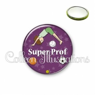 Miroir simple avec dos métallique décoré d'une image fantaisie et texte.