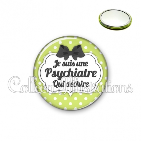 Miroir simple avec dos métallique décoré d'une image fantaisie et texte.