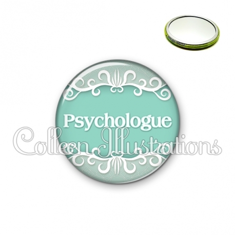 Image imprimée en haute résolution sur papier de qualité, protégée d'un film plastique, et sertie sur une coque métallique avec dos miroir. Une seule face, non grossissante.