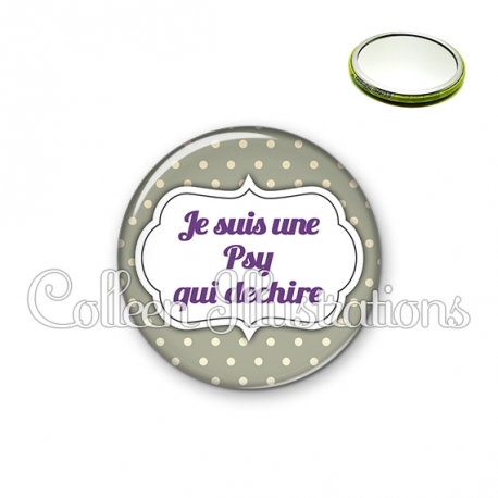 Miroir simple avec dos métallique décoré d'une image fantaisie et texte.