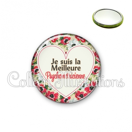 Miroir simple avec dos métallique décoré d'une image fantaisie et texte.