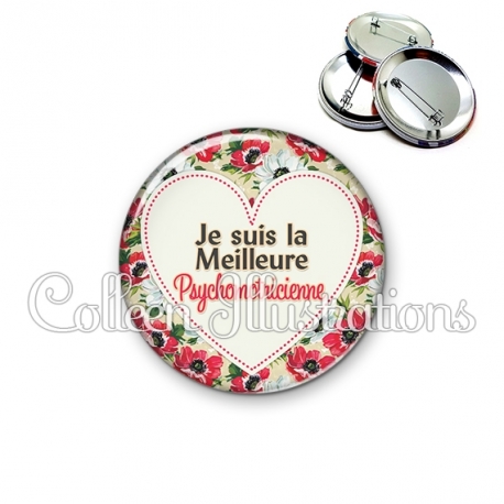 Image imprimée en haute résolution sur papier de qualité, protégée d'un film plastique, et sertie sur une coque et épingle métallique.
