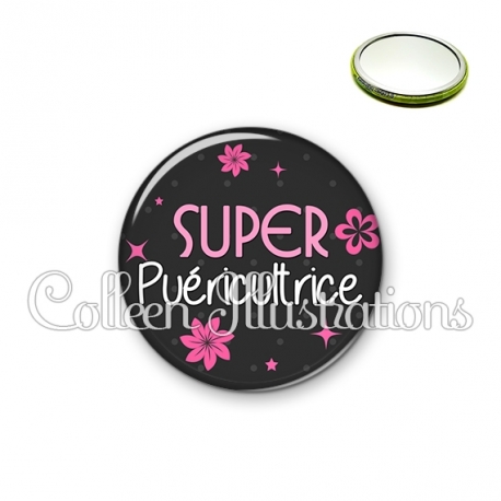 Miroir simple avec dos métallique décoré d'une image fantaisie et texte.
