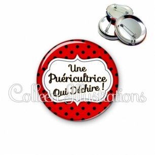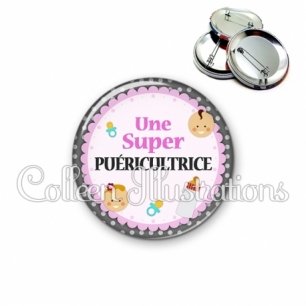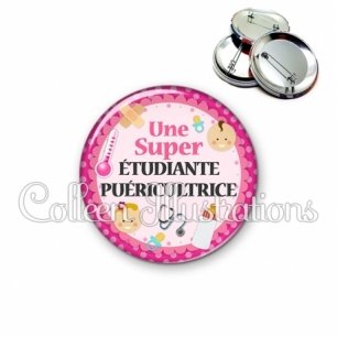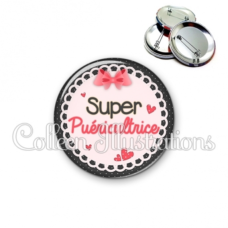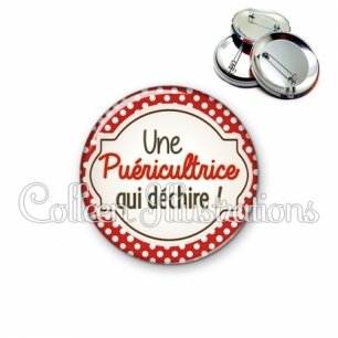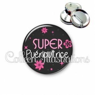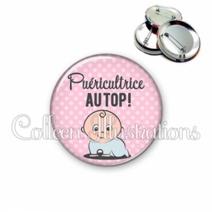 Image imprimée en haute résolution sur papier de qualité, protégée d'un film plastique, et sertie sur une coque et épingle métallique.