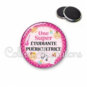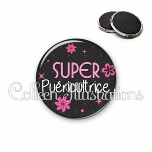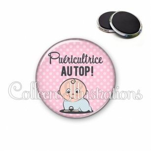 Image imprimée en haute résolution sur papier de qualité, protégée d'un film plastique, et sertie sur une coque métallique avec dos aimanté.