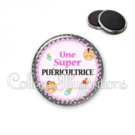 Image imprimée en haute résolution sur papier de qualité, protégée d'un film plastique, et sertie sur une coque métallique avec dos aimanté.