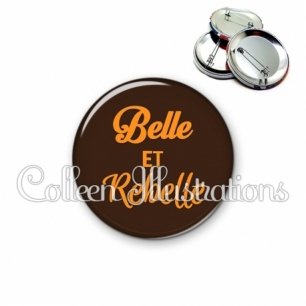 Image imprimée en haute résolution sur papier de qualité, protégée d'un film plastique, et sertie sur une coque et épingle métallique.